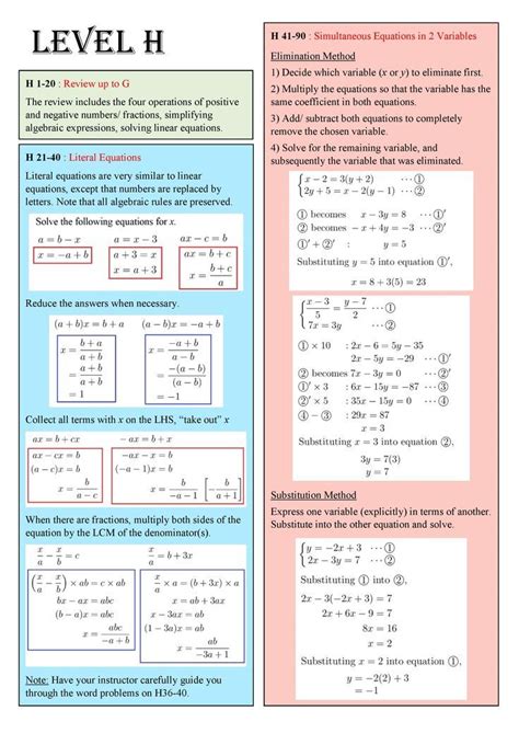Note Summary 1 Literal Equations Solving Linear Equations Algebraic Expressions